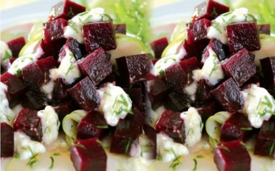 Δροσερή και πεντανόστιμη σαλάτα με παντζάρι, γιαούρτι και καρύδια.